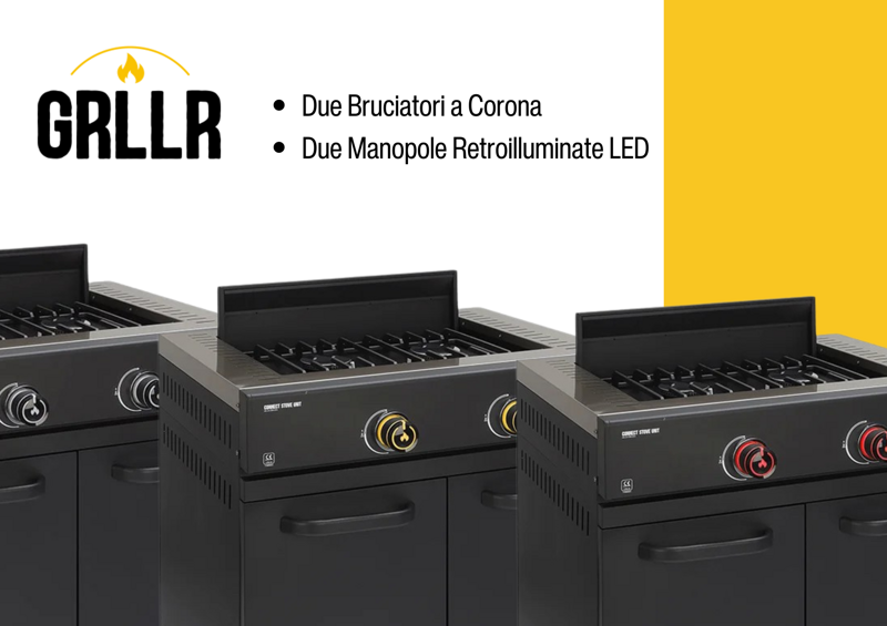 Il GRLLR Connect 2 Fuochi è il modulo che trasforma la tua cucina da esterno in una vera postazione professionale.