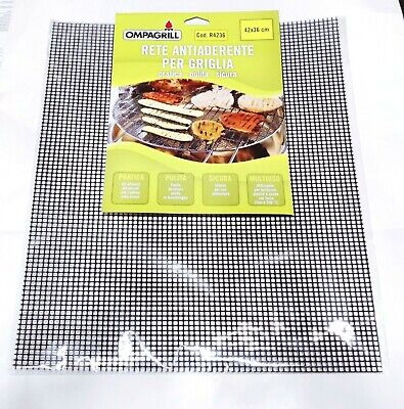 Il tappetino antiaderente Ompagrill 42x36 cm è la soluzione ideale per cucinare su griglia o piastra senza che gli alimenti si attacchino o si rompano.